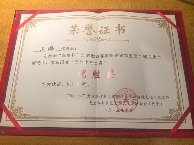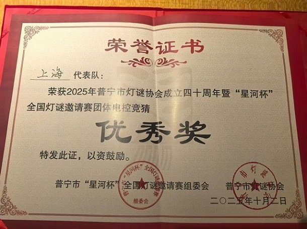 上海队在“星河杯”、“起南杯”两大全国灯谜赛事上双双获奖(附图)